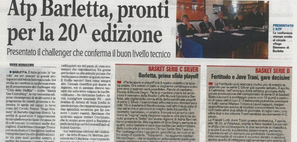 Pronti per la 20^ edizione, si parte lunedì 8 sui campi di terra rossa del Circolo Tennis Barletta “Hugo Simmen”